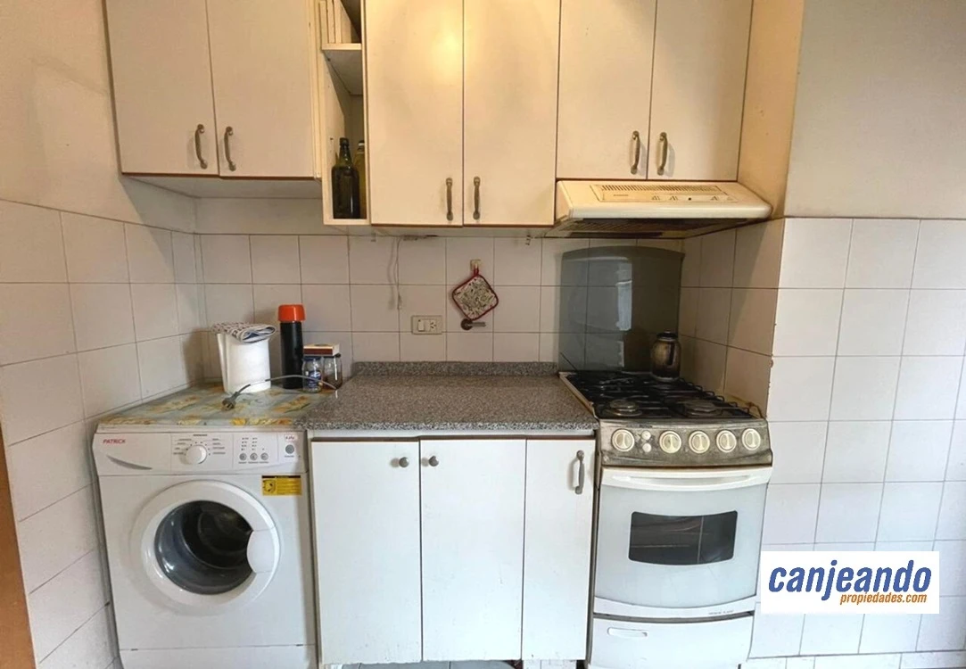 Cocina separada con muebles bajo mesada y alacenas, espacio de lavadero